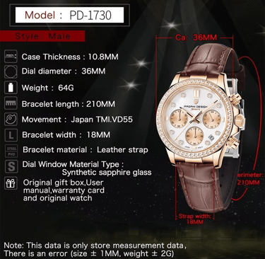 Built for real-life use, the PAGANI DESIGN women’s watch is waterproof 100%, making it suitable for daily life activities such as hand washing or light splashes. The multifunctional chronometer features add practicality without compromising elegance.